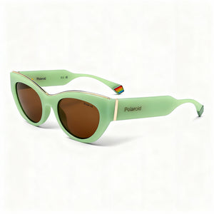 Step into your most vibrant moments with Polaroid's Frosted Green cat-eye sunglasses, designed to infuse your look with playful sophistication. Experience the world through bronze polarized lenses that not only shield your eyes but reveal every detail with breathtaking clarity and style.