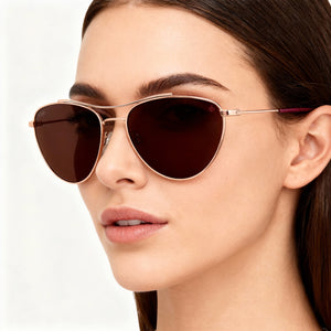 Elevate your presence with the rag & bone Modern pilot sunglasses, where a captivating Red Gold frame and matching lenses exude sophisticated confidence. Crafted for the discerning woman, they offer essential UV 400 protection while effortlessly defining your premium, modern aesthetic.