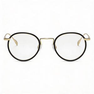 Realza tu estilo diario con la colección Rag & Bone, que combina un diseño sofisticado con un toque moderno. Estas exquisitas monturas de acero de aleación en color negro dorado incluyen lentes transparentes de demostración, listas para reemplazarlas con tu prescripción personalizada.