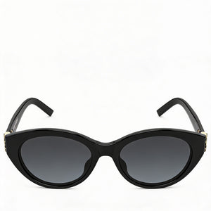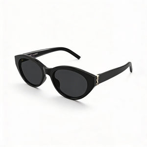 Realza tu estilo con el encanto atemporal de Saint Laurent, con una montura ovalada vintage adornada con los icónicos emblemas de YSL. Disfruta de una visión sofisticada y una protección UV esencial gracias a sus lentes grises polarizadas, enmarcadas en una distinguida montura carey.