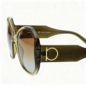 Salvatore Ferragamo Contemporary Women's Butterfly Sunglasses Khaki Brown Gradient Plastic Frame Gradient Brown Lens 61mm