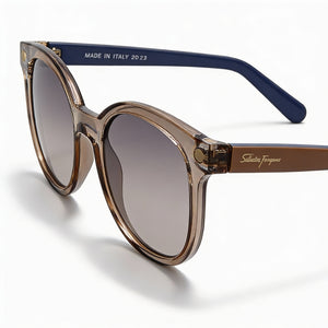 Adopta tu estilo único con las gafas contemporáneas de Salvatore Ferragamo, meticulosamente elaboradas para complementar a la mujer moderna. Su exquisita montura metálica Crystal Nude y sutiles lentes grises ofrecen un toque de refinada sofisticación, perfecto para realzar cualquier look.