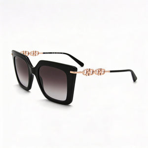 Eleve su estilo con las gafas de sol Salvatore Ferragamo Modern, creadas para la mujer contemporánea. Con una elegante forma de mariposa en negro con atractivas lentes degradadas grises, irradian un encanto sofisticado que cautiva.