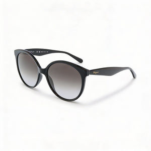 Gafas de sol redondas de plástico negro Salvatore Ferragamo Sf1071s para mujer, lentes grises degradadas, protección UV de 58 mm