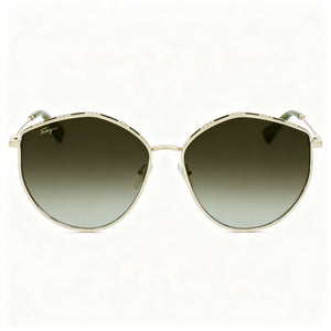 Salvatore Ferragamo Sf264s Women's Gold Green Metal Sunglasses with Green Gradient Lenses 60mm