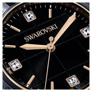 - Dazzling Design - Elevate your everyday style with precision-cut Swarovski crystals, an intricate black bezel, and a gleaming Rose Gold Tone metal strap.