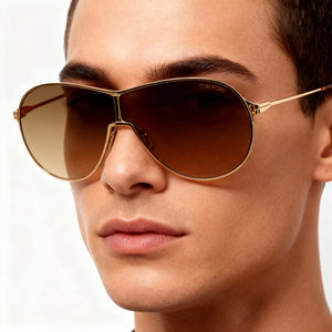 Tom Ford Classic Unisex Gold Frame Polarized Sunglasses with Shiny Deep Gold Gradient Roviex Lenses