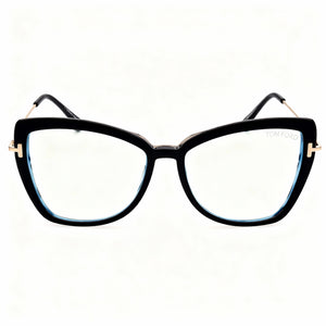 Embrace unparalleled sophistication with Tom Ford's iconic cat-eye eyeglasses, showcasing a stunning design in shiny black and pale gold. Experience effortless style and essential blue-light protection, meticulously crafted to elevate your everyday with timeless elegance.