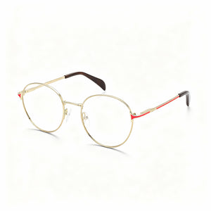 Radiate understated luxury with the TOUS classical frames, their luminous Rose Gold embracing a timeless silhouette, subtly enhanced by vibrant orange accents. Designed for the modern woman, these easy-to-wear optics offer impeccable clarity and a touch of TOUS charm, ensuring your vision is as captivating as your style.
