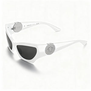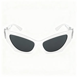 Elevate your presence with the timeless allure of Versace, designed for the woman who commands attention effortlessly. These classic white frames, featuring sophisticated grey lenses and essential UV protection, ensure you step out in iconic style and unparalleled confidence.
