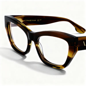 - Designer Appeal - Elevate your look with Victoria Beckham's distinctive Cat-Eye shape, presented in a sophisticated Striped Khaki.