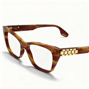 - Elevate your style with Victoria Beckham's 'Modern' design, featuring a chic Striped Blonde Havana frame for an effortlessly sophisticated look.