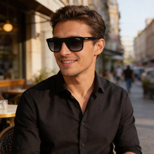 • Crafted from durable acetate, the sleek Black/Grey frame provides a comfortable and lasting wear.
