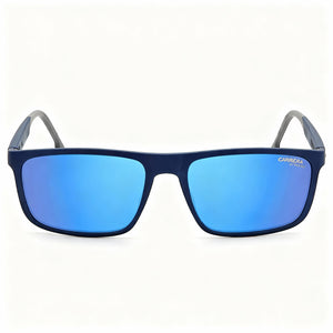 Carrera 8047/S Unisex Lightweight Polyamide Rectangle Asian Fit Blue Sunglasses, Blue Gray Mirrored Lenses, 58mm