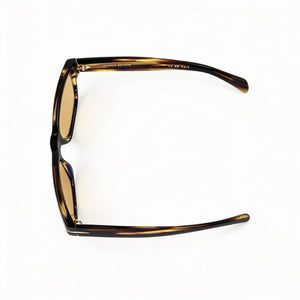 • Experience lasting comfort and durability with premium acetate frames in a striking striped brown and gold, paired with robust polycarbonate lenses.