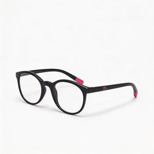 Elevate her everyday look with the undeniable charm of Dolce & Gabbana eyewear. With their chic round shape, distinctive black frame featuring a pink logo, and clear blue light filter lenses, she'll embody modern style and comfort.