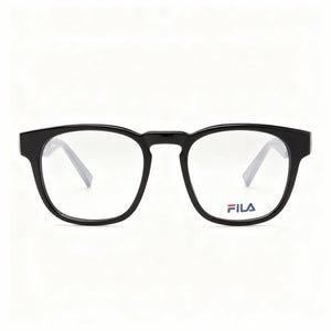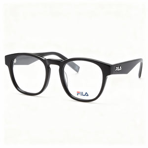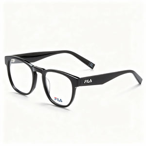 Fila VFI211 Modern Unisex Eyeglasses, Shiny Black Acetate & Metal Frame, Clear Polycarbonate Lens 50mm