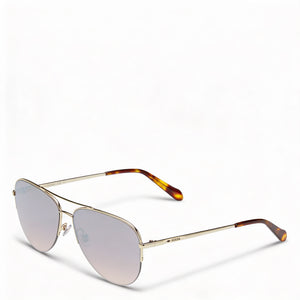 Fossil Classic Women's Pilot Light Gold Stainless Steel Gradient Light Gold Mirror UV Protection Sunglasses 58-14-140