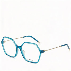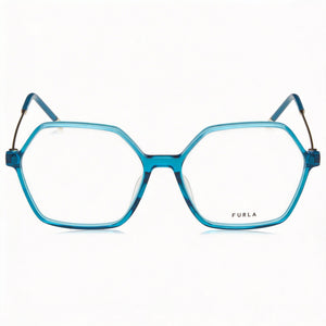 Furla Modern VFU636 Women's Geometric Full Rim Acetate Eyeglasses with Transparent Sky Blue Frame 54mm