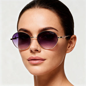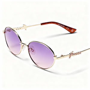 - Iconic GUESS Style - Command attention with a radiant Gold frame and captivating Violet Gradient Mirror lenses.