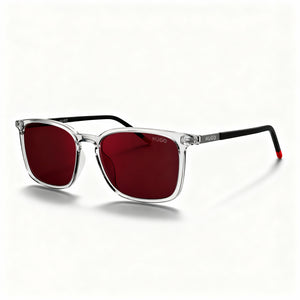 Command attention with HUGO's Contemporary sunglasses, a bold statement piece featuring a sleek Grey frame and vibrant Red lenses designed for the man who defines modern style. Experience unparalleled comfort and unwavering confidence with their lightweight build and 100% UV-protected lenses, ensuring you're ready for every moment.