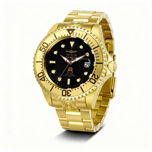 Elevate your presence with this Invicta, a masterpiece where bold gold-tone stainless steel meets a captivating black dial, designed for the man who commands respect. Experience sophisticated automatic precision and impressive water resistance, ensuring every second reflects your unwavering ambition and refined style.