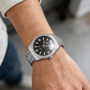 • The striking black dial offers timeless elegance, ensuring your watch effortlessly complements any outfit or occasion.