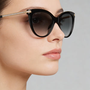 Jimmy Choo Axelle/G/S Women's Black Acetate Cat-Eye Grey Gradient Lens UV Protection Sunglasses 56mm