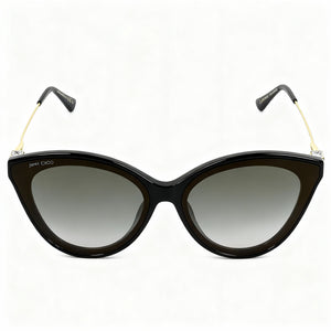 - Instantly elevate your ensemble with the iconic Jimmy Choo Cat Eye style, featuring a sleek Black acetate frame for timeless sophistication.