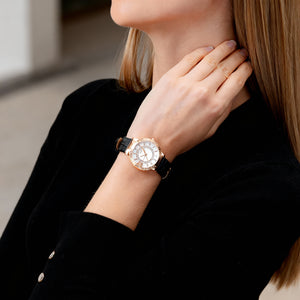 Just Cavalli Fashionable Women's Golden Black Stainless Steel Case Leather Strap Waterproof Watch