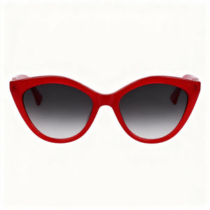Longchamp Cat Eye Unisex Red Gradient Green Acetate Frame Sunglasses with Red Polycarbonate Lenses, 100% UV Protection, 56mm