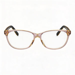 • Elevate your style with these elegant women's cat-eye frames, crafted from smooth brown acetate with a bevel detail that enhances color depth.