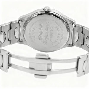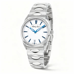 Elevate your style with the Mathey-Tissot Women's bracelet watch, a masterpiece of design featuring a pristine white dial and a luxurious stainless steel finish. Crafted for comfort and built to last, its water-resistant durability ensures this exquisite timepiece is your perfect companion for every elegant adventure.