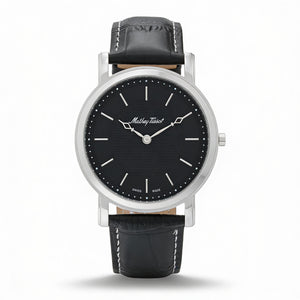 Mathey-Tissot Quartz Movement Men's Black Dial Stainless Steel Case Water Resistant Leather Strap Watch
