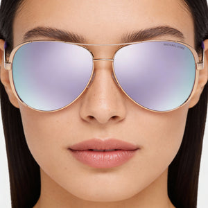 Michael Kors Mk5004 Chelsea Women's Pilot Composite Rose Gold Purple Mirror UV Protection Sunglasses 58mm