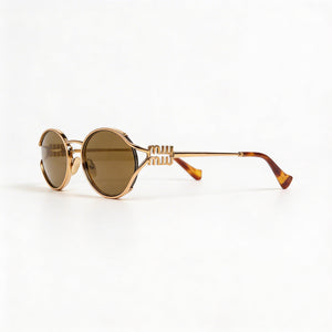 Miu Miu Classic Women's Multicoloured Metal Oval Sunglasses with Dark Brown Lenses, 54mm Lens Width, Photo 1