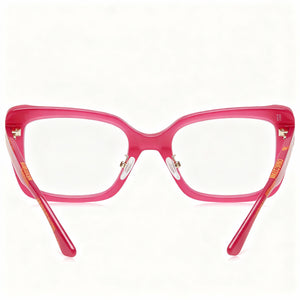 - Make a vibrant fashion statement with eye-catching Fuchsia frames from Moschino – perfect for adding a pop of designer flair to any outfit.