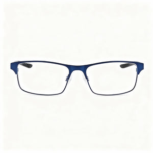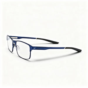 Nike 8046 Modern Unisex Metal Full Rim Rectangle Eyeglasses, Satin Navy Black, Clear Polycarbonate, 54mm