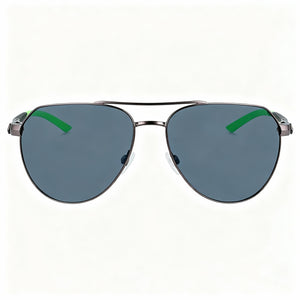 Nike Club Nine Unisex Satin Gunmetal Grey Metal Pilot Sunglasses with Grey Lens, 60-15-140mm