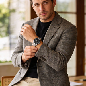 • Sophisticated Men's Design - A black-finished case complements the bracelet style, creating a versatile and elegant accessory for the modern man.
