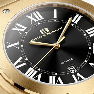 Oceanaut Quartz Movement Men's Black Dial Stainless Steel Water Resistant Watch with Scratch Resistant Mineral Crystal