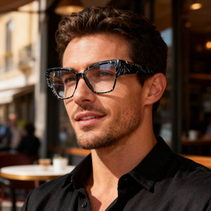 - Premium acetate frame in a sophisticated Marbled Black finish – offers exceptional durability and a unique, elegant aesthetic for any occasion.