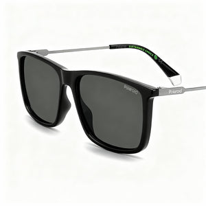 Polaroid Eyewear Minimalist PLD 4130/S/X Men's Black Eco Co-Polyester Rectangular Grey Polarized Sunglasses 59-15-145