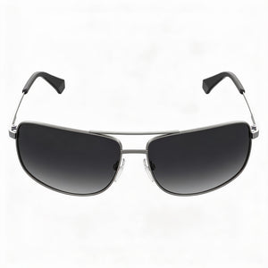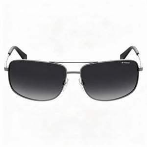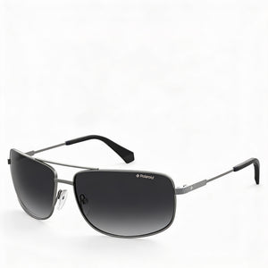 Polaroid Men's Rectangular Polarized UV Stainless Steel Sunglasses, Semi Matte Ruthenium Frame, Gray Lens, 63-14-130mm