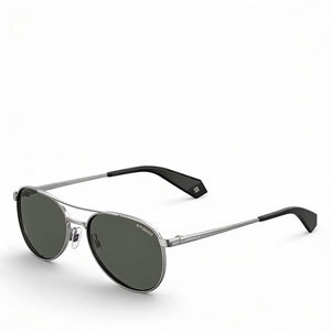 Step out with confidence in these Polaroid Pilot sunglasses, an evergreen accessory designed for the modern woman. Featuring a daring double bridge and comfortable, ultralight Ruthenium frame, they offer both sophisticated style and superior polarized grey lenses with 100% UV protection.