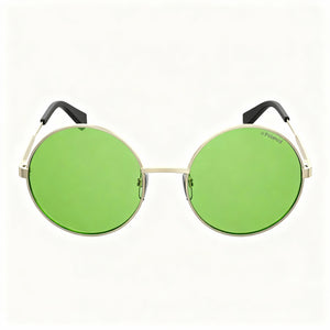 Polaroid Sunglasses Pld 4052/S Unisex Silver & Black Metal Round Double Bar Frame with Green Polarized Lenses 55mm