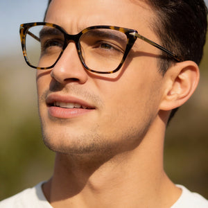 • Features a distinctive Brown Havana Gold plastic frame, offering a stylish look and comfortable, lightweight wear.