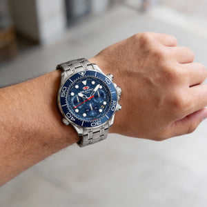 Seapro Modern Men's Blue Dial Stainless Steel Case & Bracelet Quartz Movement 100M Water Resistant Watch