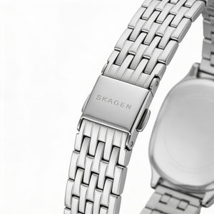 Embrace the refined simplicity of the Skagen Mellem Lille, a timepiece crafted to make a subtle yet distinctive statement. Designed for the modern woman, its elegant silver silhouette and soft-square case effortlessly elevate your personal style.
