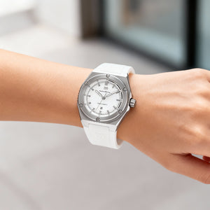 • Durable Silicone Strap - Experience both durability and elegance with the high-quality silicone strap, providing a secure and comfortable fit with a sophisticated clasp.